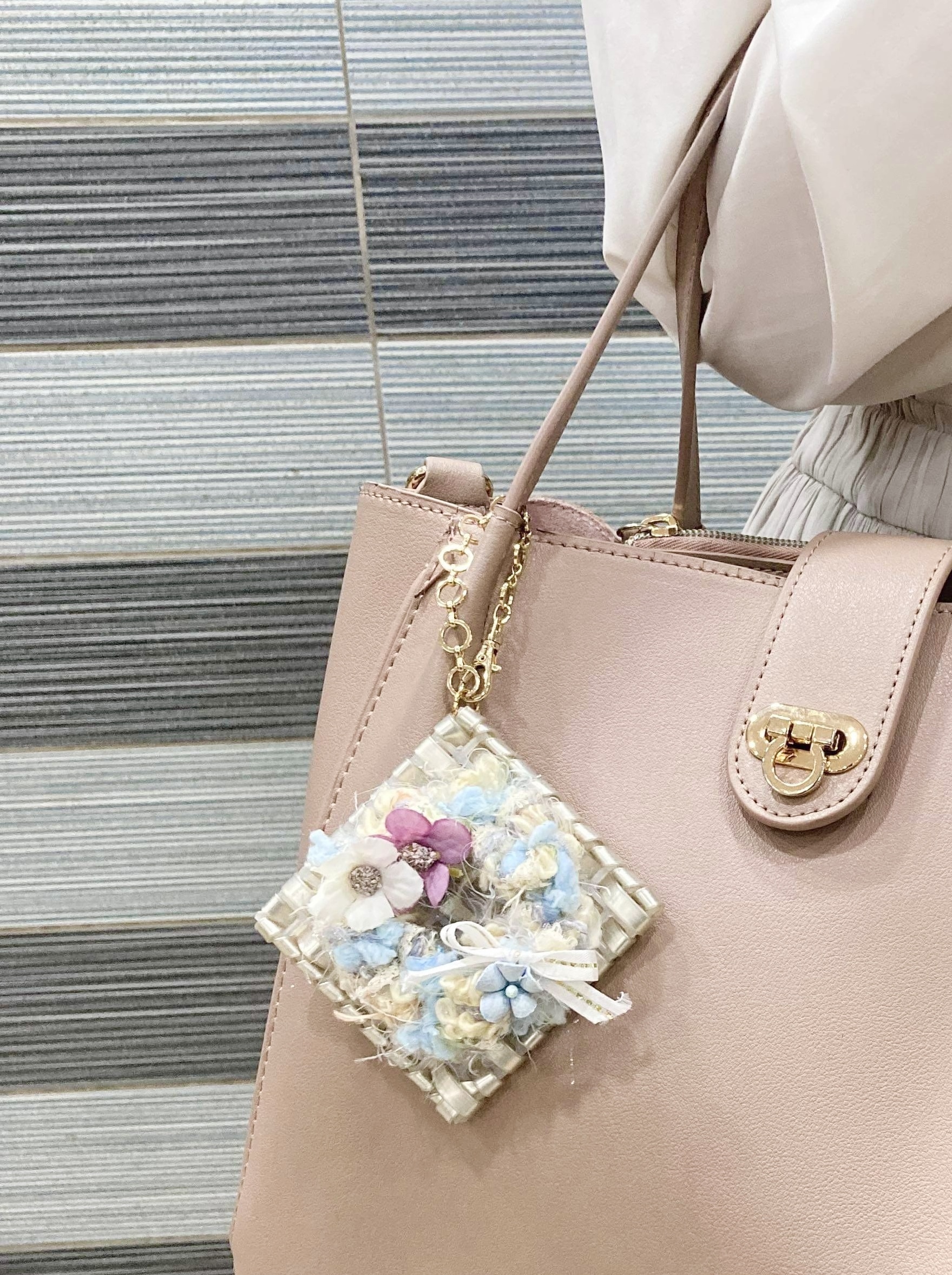 ふわふわ感だけでなくキラキラ感も魅力の他にはないオリジナルチャームですバッグにつけてLet's Journey‼